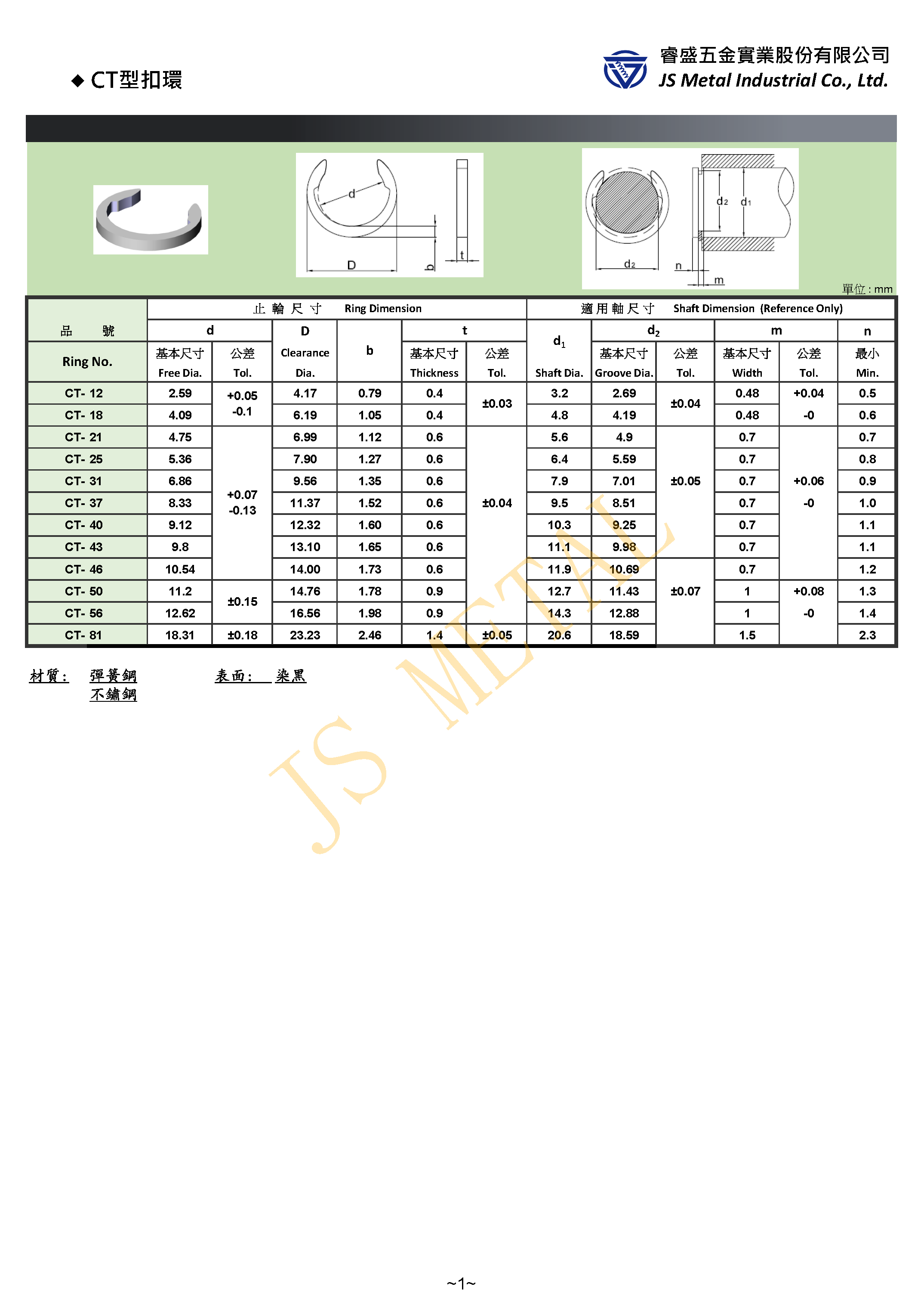 1.軸用(外扣環) : 安裝於軸外部,在軸凹槽上卡緊。